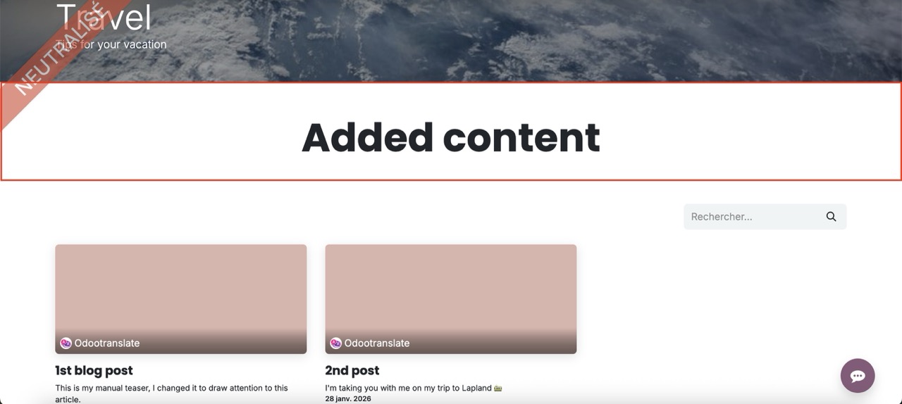 En bref : Contenu ajouté dans la page d'accueil du blog.